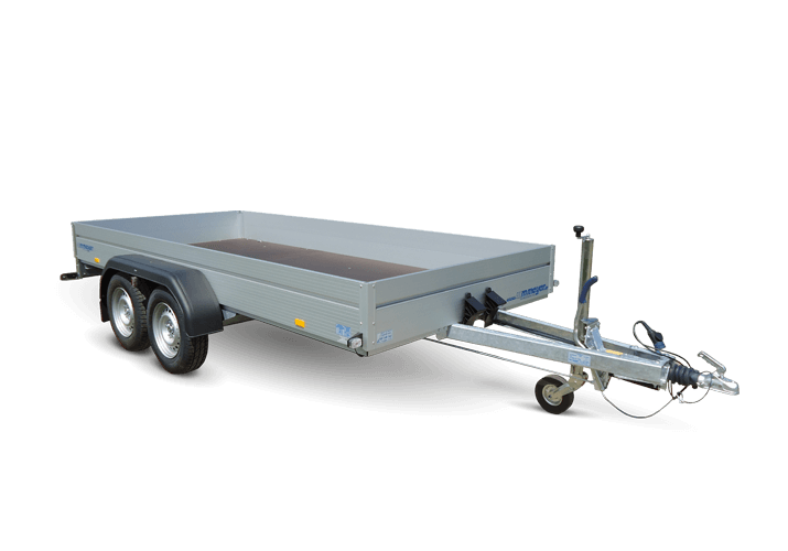 Ridelles en alu anodisé avec rainure pour attacher une bâche (épaisseur : 25 mm, hauteur : 350 mm), serrures intégrées, coins adaptés aux ossatures de bâches, ridelle arrière ouvrable.