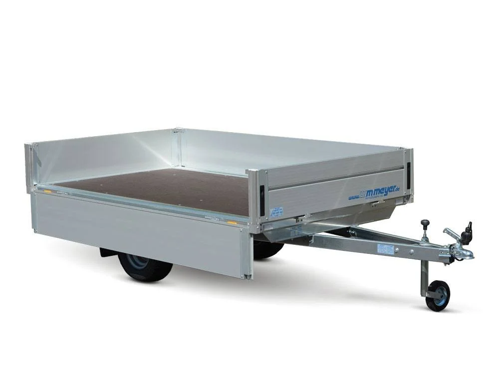 Ridelles en alu anodisé, rainure pour attacher une bâche (épaisseur : 25 mm, hauteur : 330 mm), serrures intégrées, ridelles ouvrables des 4 côtés, ridelle arrière amovible.