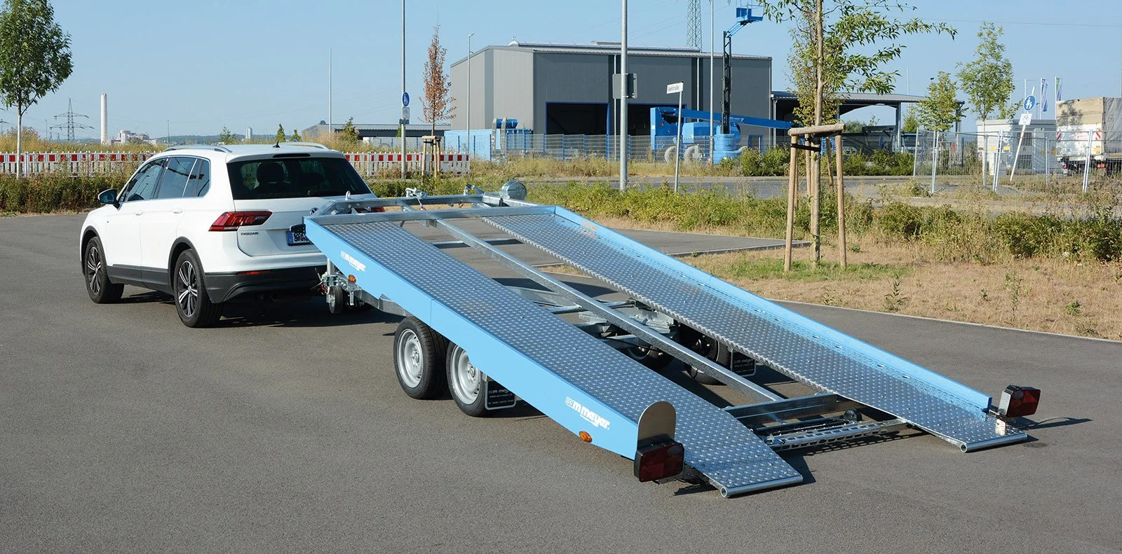 Roue jockey renforcée, support de plaque minéralogique rabattable, plateforme ouverte en aluminium avec 16 trous d'arrimage pour sangles à cliquer, inclinaison : 10°-12+ (selon les pneus).