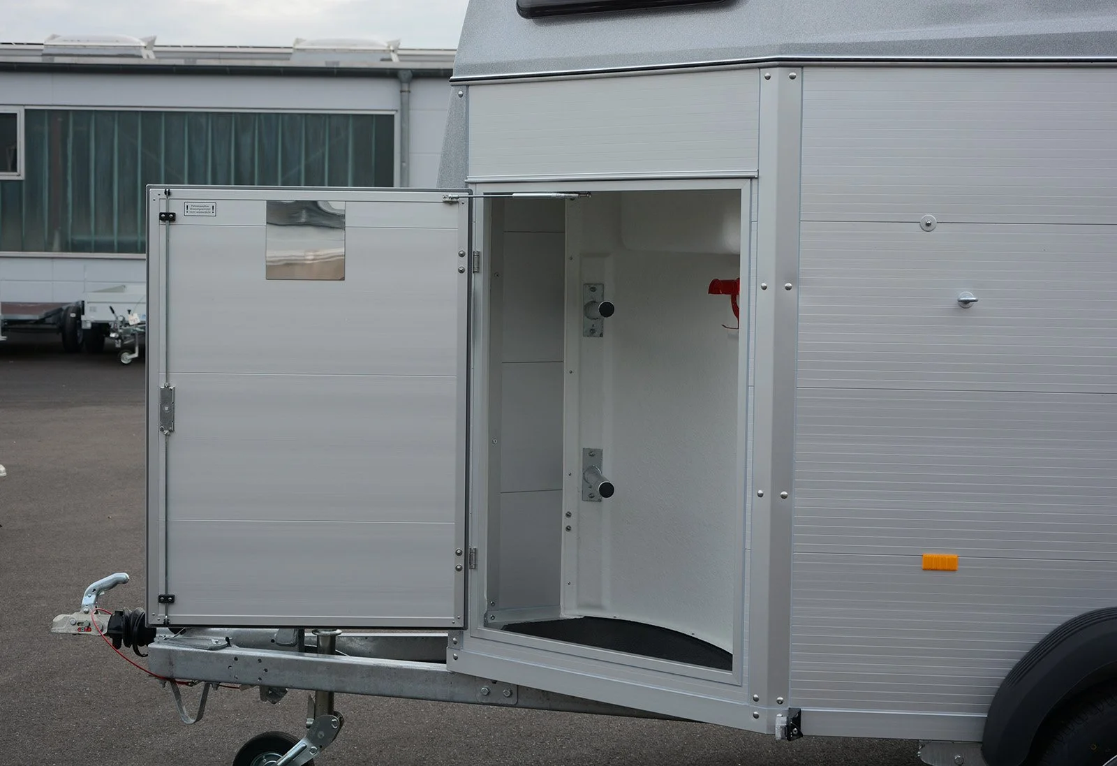 Grande sellerie, porte (verrouillable), 2 seaux mangeoire amovibles